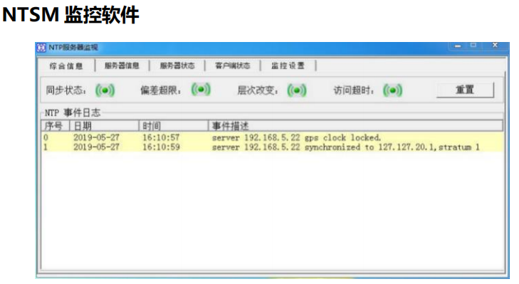 ●用于對HJ2000B設備中NTP服務的詳細監(jiān)控; ●可監(jiān)視HJ2000B服務器自身的狀態(tài)信息,包括同步狀態(tài)、時間偏差、層次信息等; ●可監(jiān)視北斗/GPS參考源信息,包括鎖定狀態(tài)、定位信息等; ●可監(jiān)視NTP客戶端訪問情況和時間偏差; ●支持時間偏差門限告警、失鎖告警和狀態(tài)切換告警; ●支持SNMP、syslog、Email等告警方式; ●支持服務器集群服務質(zhì)量監(jiān)測和優(yōu)選制動操作。 |