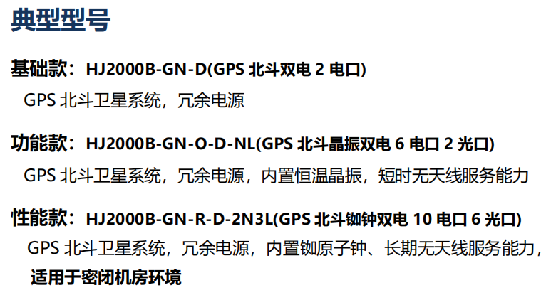 | 概述 HJ2000B系列NTP網(wǎng)絡時間服務器支持標準NTP(含v1/2/3/4)和SNTP網(wǎng)絡協(xié)議,可為計算機應用系統(tǒng)、流程控制管理系統(tǒng)、電子商務系統(tǒng)、網(wǎng)上B2B系統(tǒng)以及數(shù)據(jù)庫集群等系統(tǒng)需要提供精密網(wǎng)絡授時服務和時間戳服務,廣泛應用于企事業(yè)單位、金融、移動通信、醫(yī)療、石油、電力、交通、工業(yè)以及特殊行業(yè)等各個領域。 HJ2000B系列NTP網(wǎng)絡時間服務器采用安全的MD5協(xié)議和證書加密方式,支持參考源冗余、網(wǎng)口災備、雙機熱備等功能,確保系統(tǒng)服務可靠;設備具有完整的日志記錄,便捷的WEB管理界面,同時設備支持SNMP網(wǎng)絡管理協(xié)議,并提供獨立的NTSM監(jiān)控軟件來監(jiān)測客戶端時間偏差。 HJ2000B創(chuàng)新性的采用了基于PCI-E總線全模塊化插箱設計,基于Linux的全系統(tǒng)集中監(jiān)控以及泰福特具有完全自主知識產(chǎn)權的時間馴服和守時技術,可實現(xiàn)GPS、北斗等多參考源輸入和多類型時頻信號輸出的按需靈活配置,可實現(xiàn)系統(tǒng)板卡級實時故障診斷與處置,以及SNMP、UDP、CONSOLE等多種協(xié)議管理控制接口,可廣泛應用于企事業(yè)單位、金融、移動通信、醫(yī)療、石油、電力、交通、工業(yè)以及特殊行業(yè)等領域。 HJ2000B可以配置5個PCI-E 插槽,每個插槽支持4路千兆電口或者2路萬兆光口,方便擴展,可支持22路電口或10路光口,或電口光口的混合配置。網(wǎng)絡接口默認支持NTP協(xié)議,可通過軟件配置支持IEEE1588v2(PTP)協(xié)議。